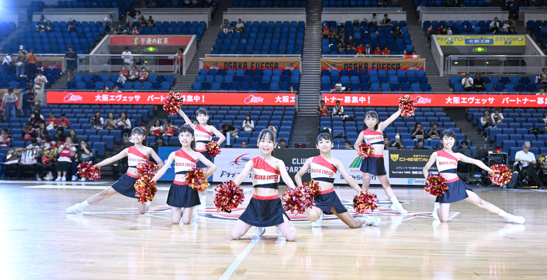 大阪エヴェッサアカデミーでは、大阪や兵庫など約20か所のスポーツ施設でチアダンススクールを開講しています。4歳から小学生・中学生までを対象とし、コミュニケーションを始めとする自己表現力や協調性などを育みます。